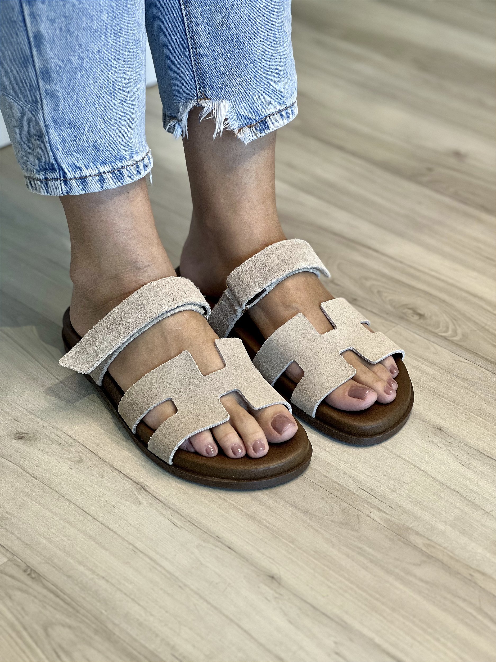 A Birkin Hermes é uma peça que une estilo e funcionalidade em um design marcante. Feita em couro, essa sandália é uma homenagem ao icônico modelo H da Hermès. Seu fechamento em velcro oferece praticidade, enquanto o visual arrojado e sofisticado garante um toque de exclusividade. Perfeita para quem aprecia moda com uma pegada atemporal e versátil.